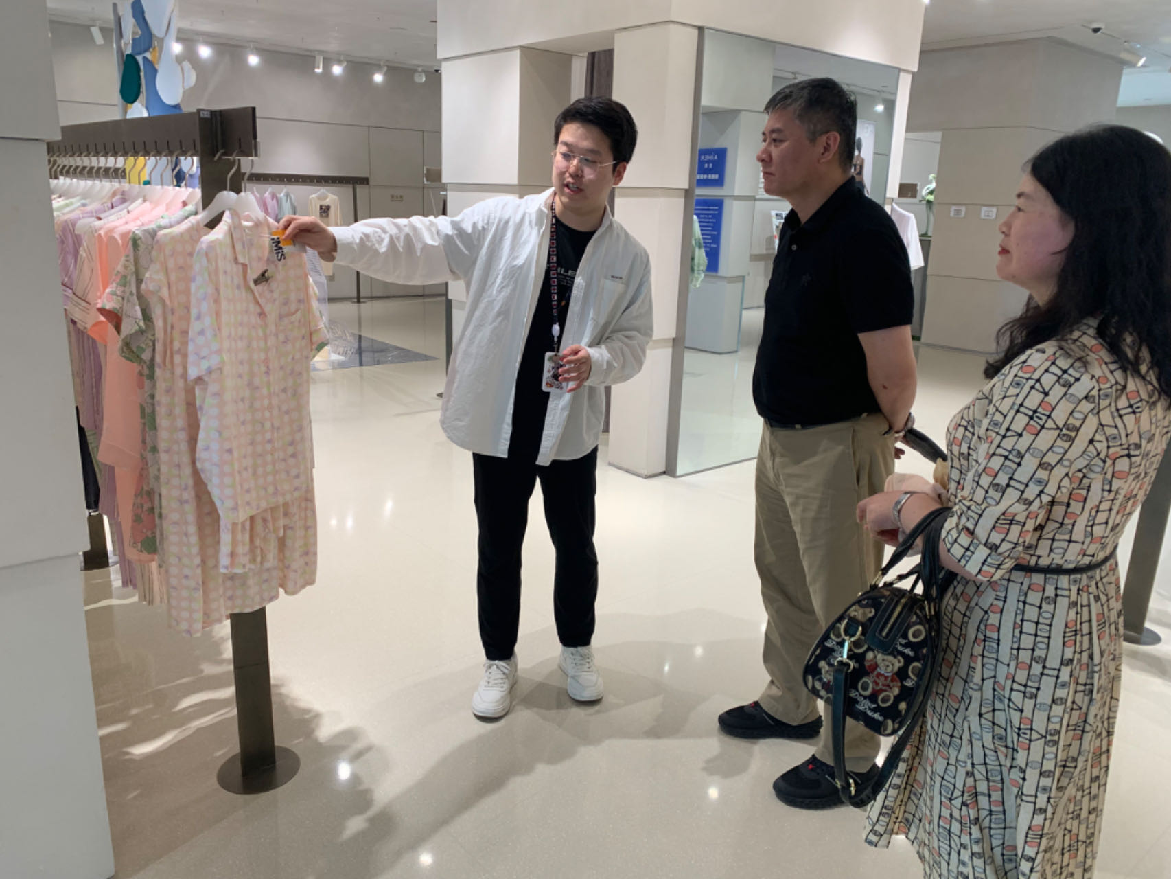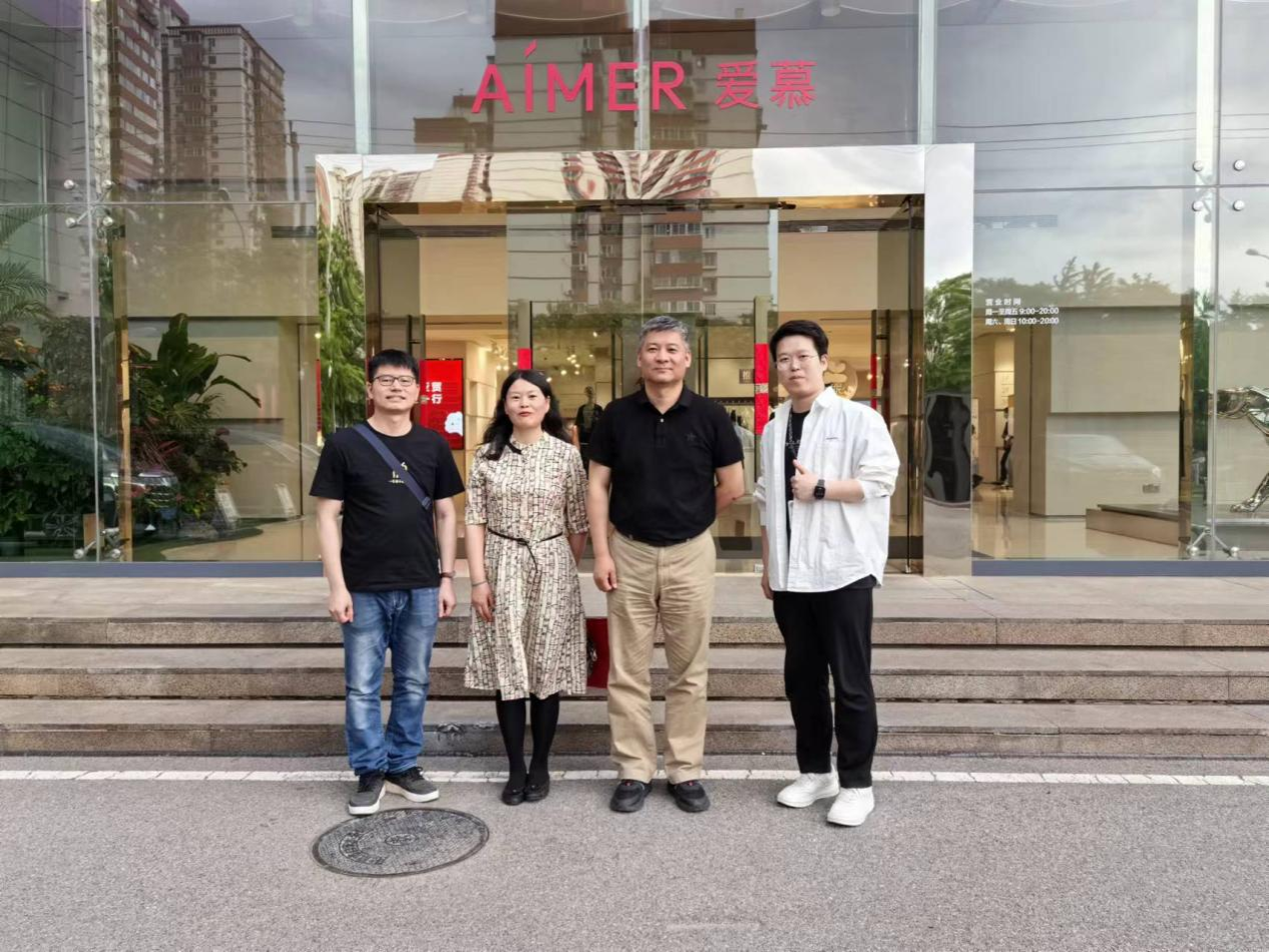 吕钊院长一行受到了公司资深HR刘华夏先生的热情接待,带领参观调研了公司一楼的售卖展厅并详细介绍了爱慕公司的红桃视频以及旗下各品牌的特色和品牌故事。吕钊院长详细地了解红桃视频和产品特色,就感兴趣的服装制版、工艺和面料问题进行了详细了解和交流,并表示爱慕产品设计新颖、材料环保,具有很强的市场价值。