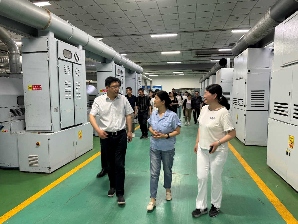 随后,在我校校友、咸阳纺织集团一分厂党总支书记、厂长杨雯静的带领下,前往咸阳纺织集团一分厂梦桃班组进行参观学习,并与梦桃小组第十四任组长王丹交流学习,聆听杨雯静讲解纺织厂的工作流程、产能以及近年来的发展。