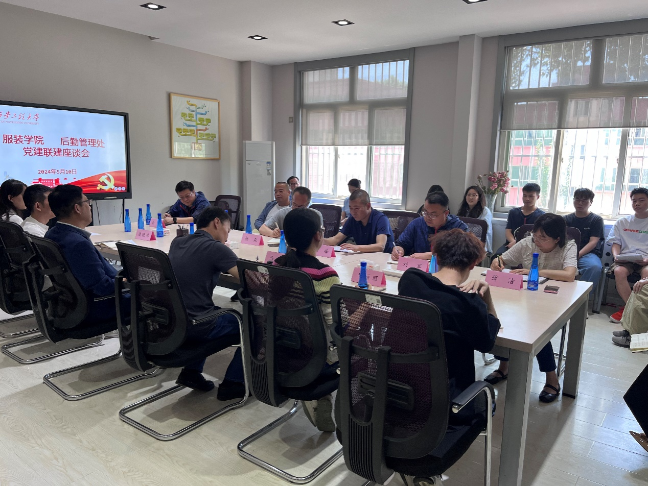 为深入学习贯彻党的二十大精神,充分发挥党建引领作用,5月10日上午10:00,服装学院与后勤管理集团在服装楼三楼会议室召开党建联建座谈会,服装学院党委书记苏博、党委副书记马磊、后勤集团党总支书记杨森、后勤动力科、物业管理科及餐饮科的相关负责人及学生代表20余人参加了本次会议。