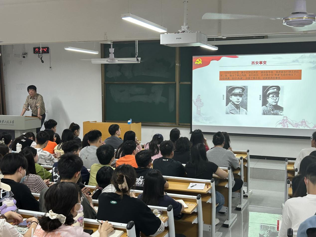 赵鹏带着同学们回顾了中国共产党的百年光辉历程。百年时光中国共产党带领全中国人民把革命、建设改革、复兴事业不断推向前进。回顾百年征程,从新民主主义时期的救国大业,到社会主义革命和建设时期的兴国大业,再到改革开放和社会主义现代化建设新时期的富国大业......过往种种壮举,依旧紧紧扣动着我们的心弦。