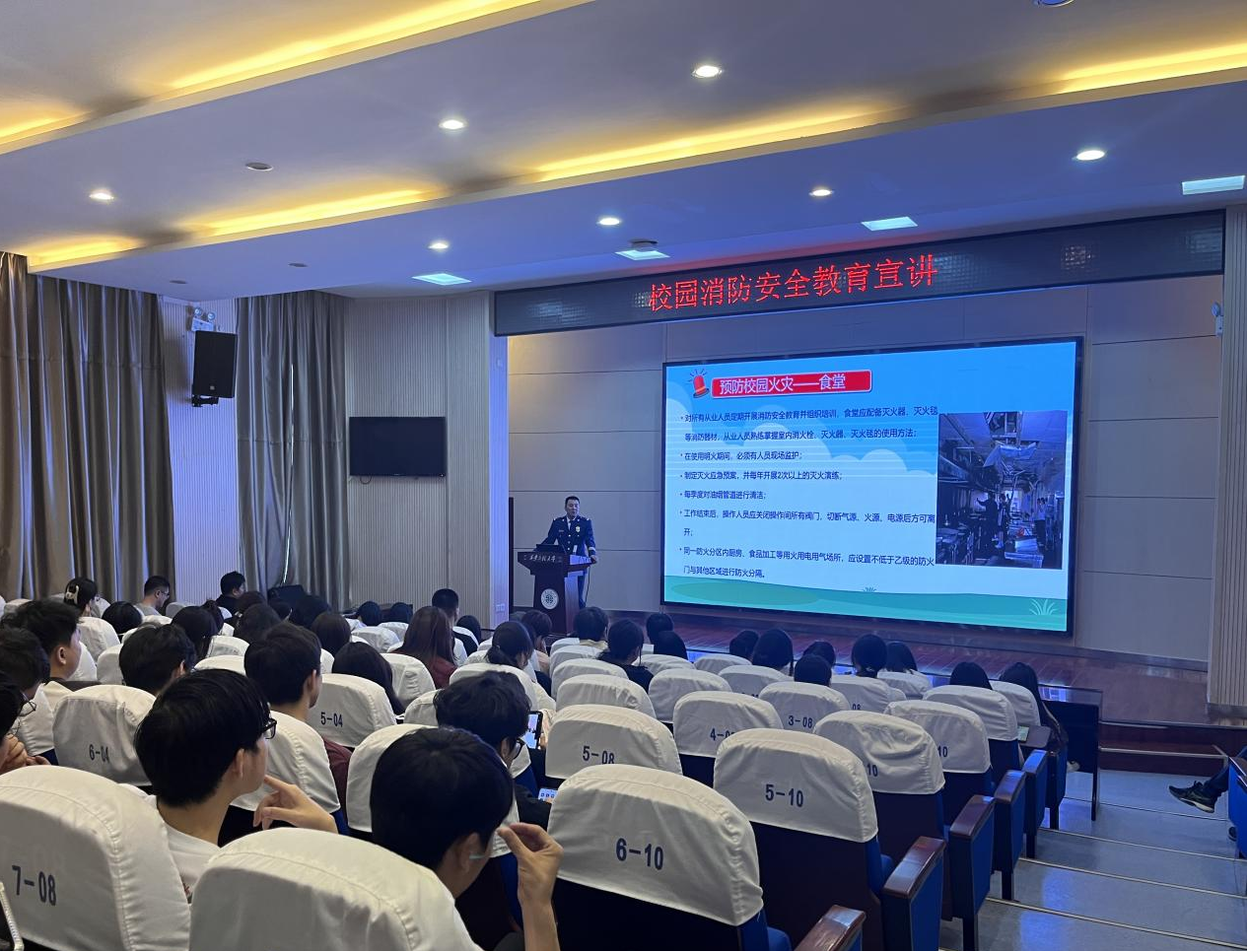 辅导员刘文奇致开场词,他指出:“国家这些年来越发地重视消防安全,火灾安全已成为我们不可忽视的重要议题。今天的讲座是我们为了增强同学们的防火防灾意识,提高紧急情况下的自救互救能力和防火逃生技能,特别组织的一次安全教育活动。”他的发言为讲座增添了一份严肃和期待。