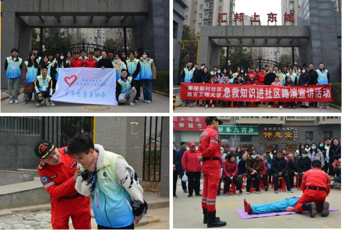 3月5日下午2点,西安市曙光救援队的成员们与服装学院青协的20余名青年志愿者,在服装学院挂牌服务基地临潼区秦岭街道新村社区共同开展急救宣传志愿服务活动。服装学院团委副书记孙晨倩老师对活动进行现场指导。