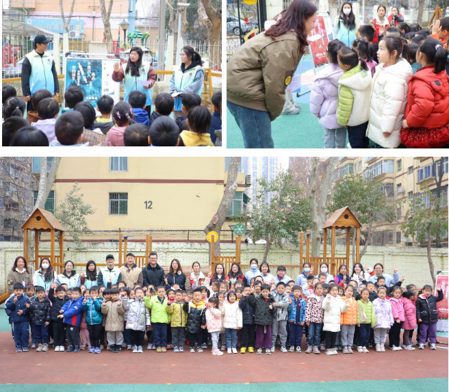 (青年志愿者们向幼儿园学生讲授禁毒知识现场)