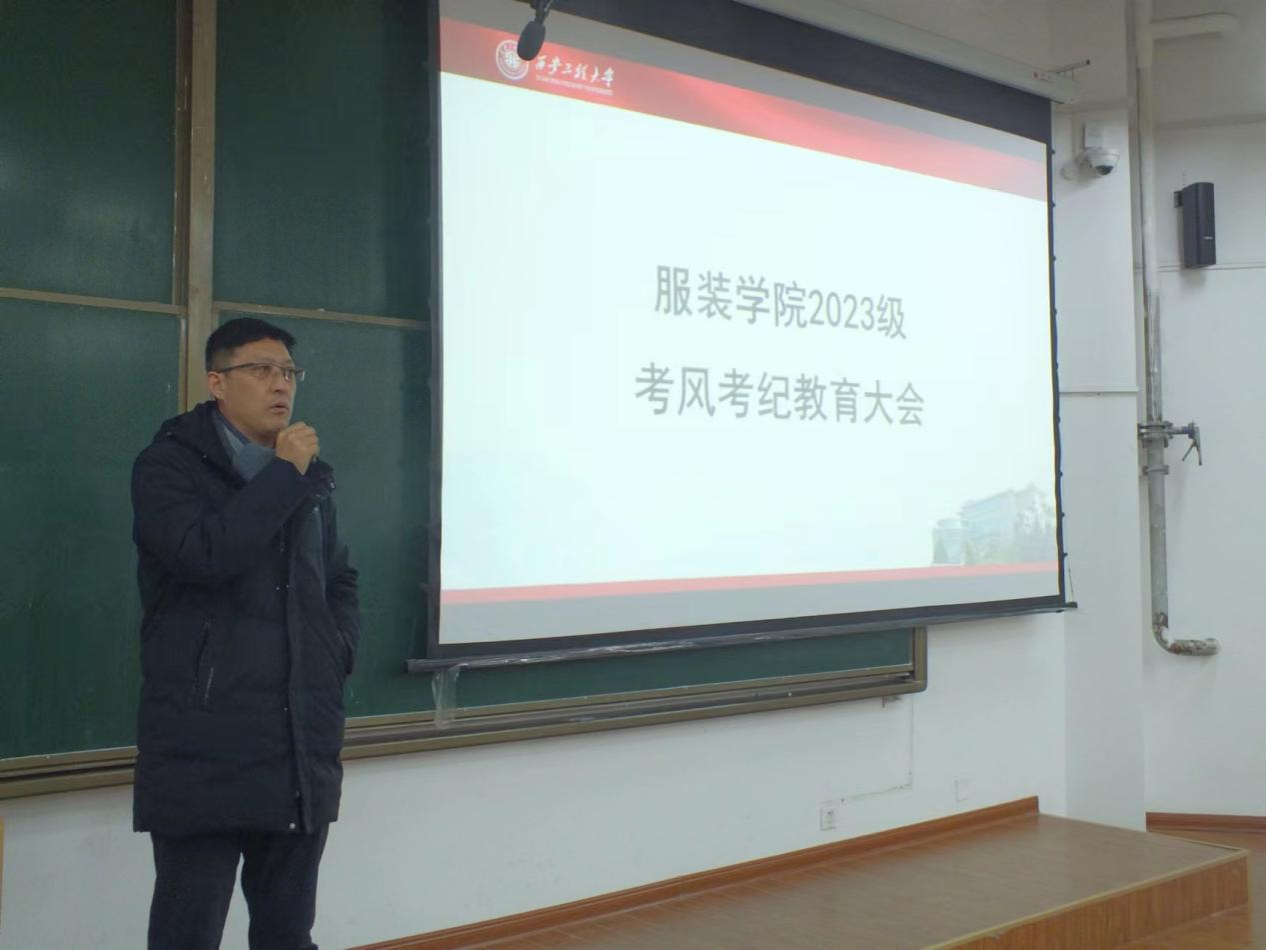 在临潼校区B137教室分三批次召开了2023级学生期末总结暨考风考纪教育大会。会议由学院党委书记苏博主讲,新生辅导员孙晨倩、李涵博、谭赛江及2023级全体学生909人参加会议。