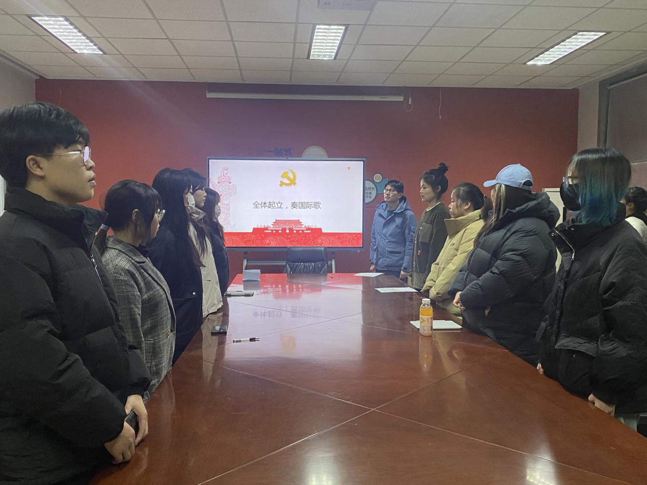 支部全体党员起立奏唱国歌后,支部大会讨论63期预备党员转正事宜。首先由预备党员郭慧婷等8位同志汇报预备期一年来自身各方面的情况。他们表示要做一名合格的共产党员,不只是要在组织上入党,更要在思想上行动上入党。邹晗等同志作为入党介绍人认为郭慧婷等8位同志在思想上做事认真负责,思想上不断向党组织靠拢,认为其符合转为中共正式党员条件。随后,经支部大会充分讨论和进行无记名投票方式表决,认为郭慧婷等8位同志在预备期间表现良好,符合转正条件,一致同意其按期转正。来灵禹同志代表转正预备党员作表态,表示在今后的工作学习中,将更加严格要求自己,虚心向先进的党员同志学习,努力克服缺点和不足,全面的提高自身素质。