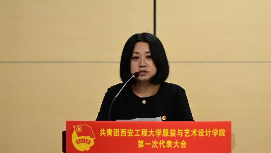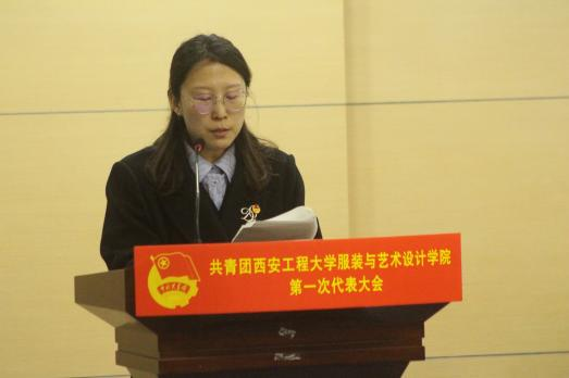 第一次代表大会在金花校区图书馆如意报告厅成功召开。校团委书记刘俊富、服装学院党委书记苏博、副书记郭欣欣、环化学院团委书记贾天昱,服装学院团委书记马薏雯及100名师生代表参加本次大会。大会由服装学院团委副书记孙晨倩主持。本次团代会收到了陕西科技大学艺术设计学院等6家兄弟单位发来的贺信。