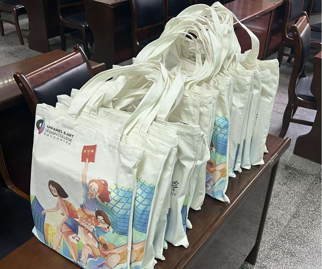 在此次发国家宪法日宣传活动中,学院充分发挥服装学院专业特色,设计了宪法宣传周纪念品,向宪法宣传学习过程中表现优异的同学发放,使宪法宣传入脑入心,有效增强了广大师生的法治观念,并引导全体教职员工为建设平安和谐校园,作出应有的贡献。