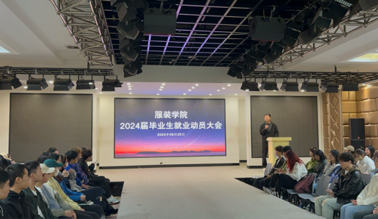 在金花校区表演厅,服装学院召开了2024届毕业生秋季招聘就业动员会,服装学院团委书记马薏雯、毕业生辅导员邵巍、王盼出席会议,三位老师分别面向毕业生进行就业心理准备、就业市场分析、就业系统使用说明、三方协议签订流程,以及就业技巧的指导。