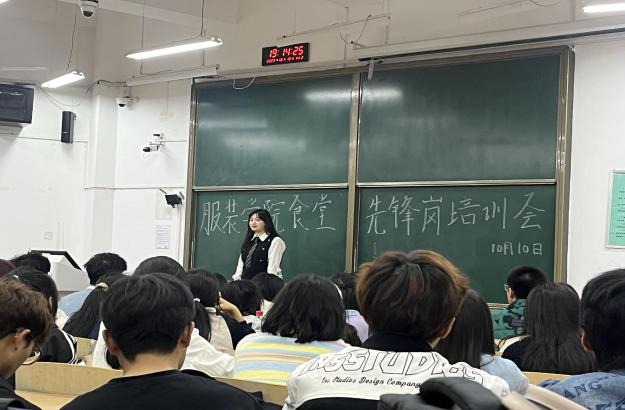 为了提倡同学们在食堂文明就餐,营造良好的就餐环境,为食堂先锋岗志愿者做好服务指引,服装学院青年志愿者协会分别于10月10日、11月14日召开了两次食堂先锋岗志愿者培训会。