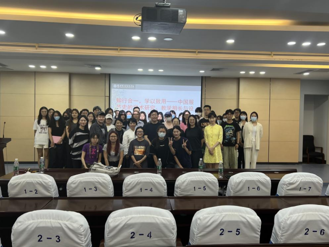 副院长袁燕主持,服装设计系主任刘静老师及服装设计系部分代课老师、2022级艺术设计研究生与2020级时装设计方向本科生一同参加。