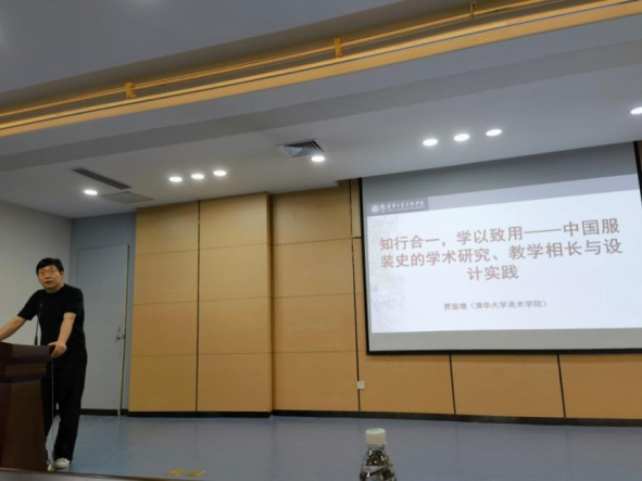讲座上,贾玺增教授从个人学术方向、研究敏感度和设计方向文化溯源三个方向论述了中国服装史的学术研究、教学相长与设计实践。