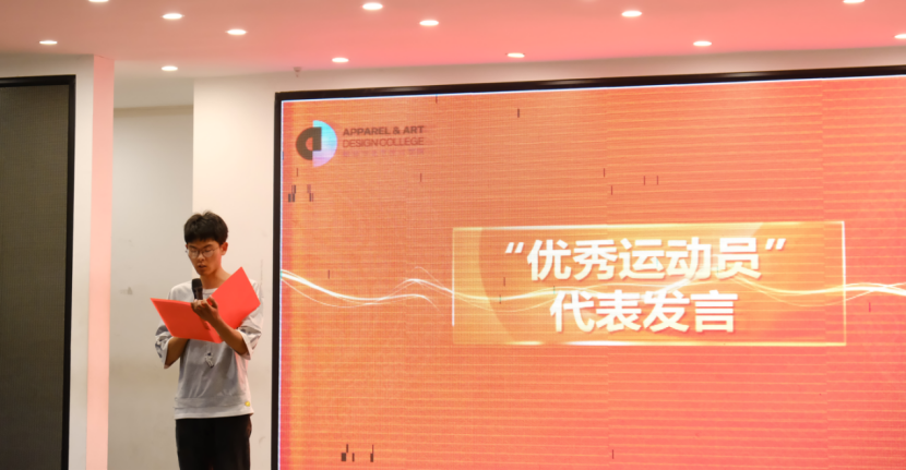 会议伊始,主持人宣读了《关于表彰第四十一届田径运动会服装学院优秀运动员、领队的决定》和《关于表彰第四十一届田径运动会优秀开幕式演职人员、手势操领队、海报设计“创意之星”和精神文明班集体的决定》,并通过三段视频将同学们的思绪再次拉回到本届运动会上。随后,与会领导、老师为获奖个人、集体颁奖。优秀运动员、优秀开幕式演职人员、手势操领队代表进行了发言。