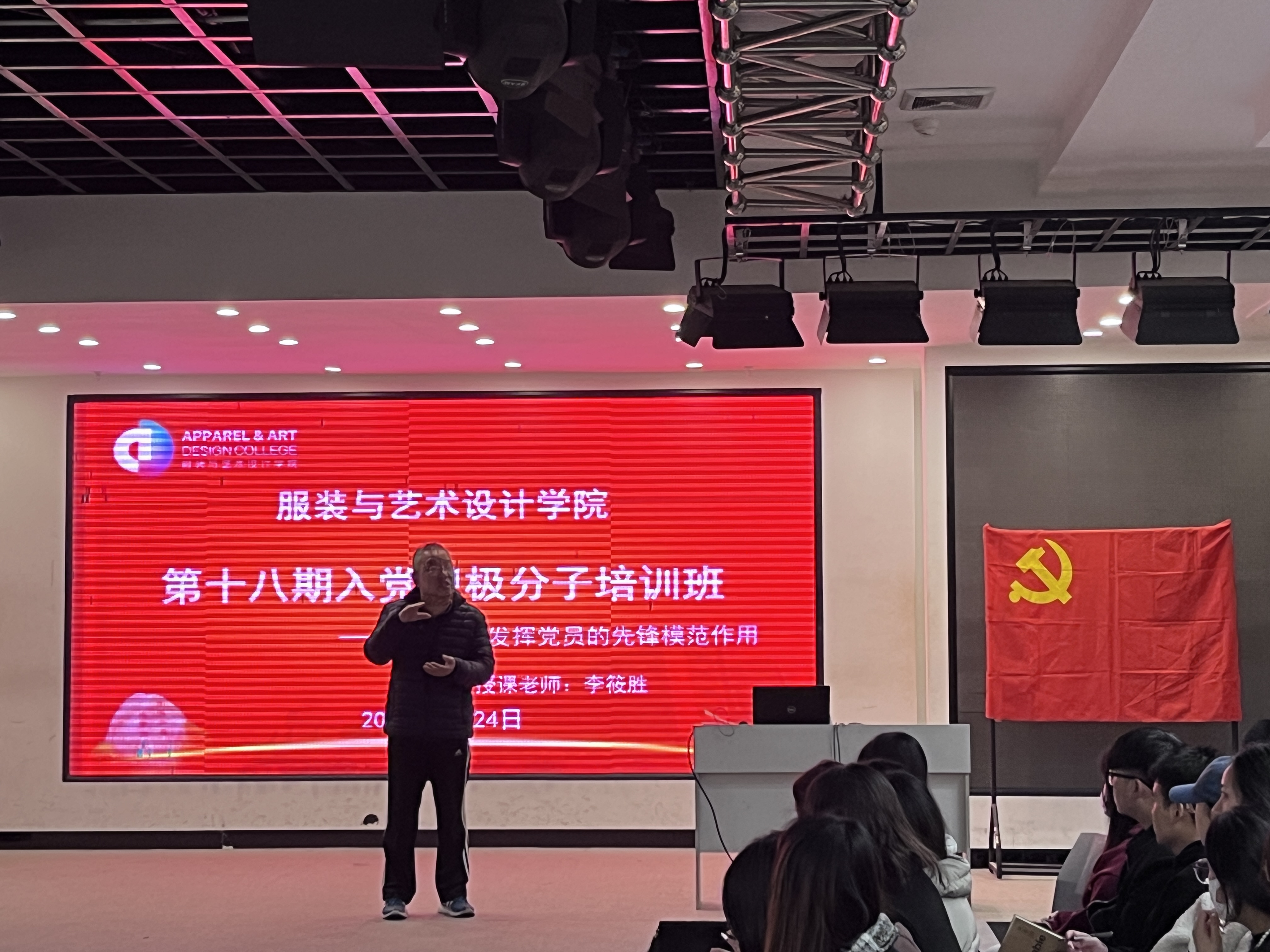 为进一步做好服装学院党建工作,提高学院入党积极分子的党性修养,及时落实党内积极分子教育,为学习贯彻党的二十大精神,凝聚奋进新学期强大精神力量。4月24日晚,服装学院在金花校区服装楼表演厅举行第十八期入党积极分子初级党课培训班开班仪式。参加开班仪式的有学院党委书记李筱胜,研究生辅导员梁育,以及学院入党积极分子80余人。专职组织员吴艳杰主持会议。