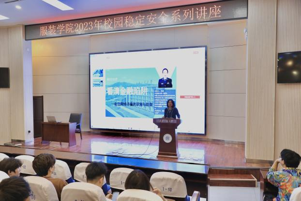 学生开展“看清金融陷阱——预防电信诈骗的识别与防御”专题讲座。讲座由服装学院党委副书记郭欣欣主持。