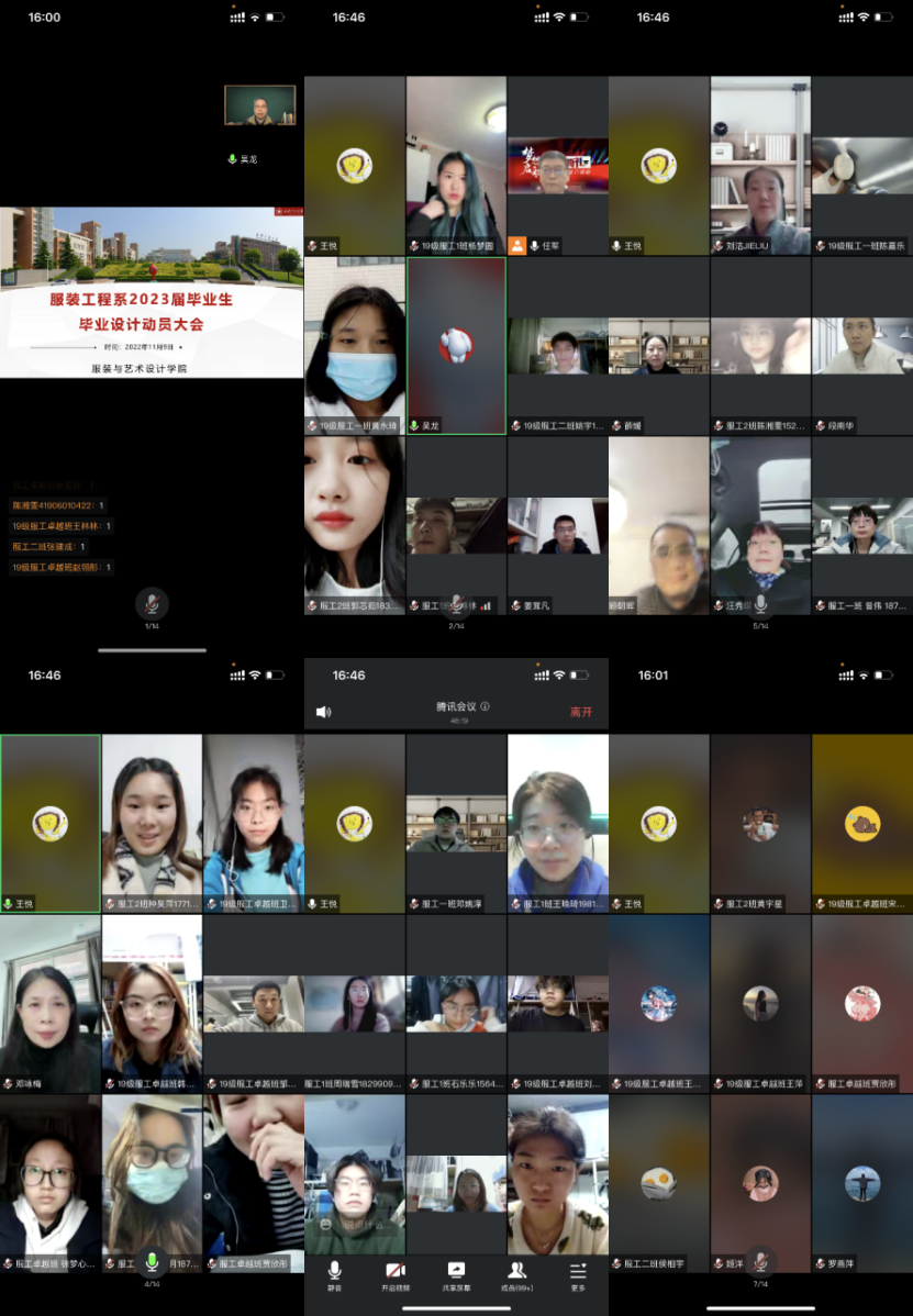 2022年11月9日下午四点,服装学院服装工程系在线上召开了2023届毕业生毕业设计动员大会。服装工程系全体老师以及2019级服工班全体同学参加了此次会议。会议由服装工程系副主任吴龙老师主持,从毕业设计的目的、导师安排、时间安排、毕业设计的内容、毕业实践等五个方面详细的介绍了毕业设计过程。