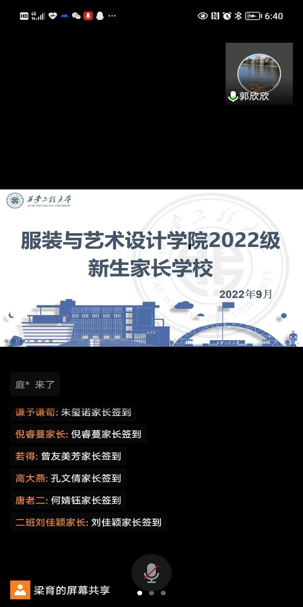 三、以生为本,立德树人。在学院党委的统筹安排下,服装学院坚持立德树人根本任务,坚持以生为本,坚持多措并举做好 2022级新生入学教育工作。一是坚持言传身教。学院院长吕钊、学院党委书记李筱胜,多次来到两校区迎新现场,与迎新工作人员和2022级新生互动,介绍学院的基本情况;学生入校后,联系服装学院的校党委委员、校纪委书记、监察专员辛永昌与学院党政领导一同前往宿舍看望2022级学生,勉励全体同学尽快完成大学生的身份转换,适应大学生活,确定自己的目标,立大志,成大才。二是坚持以生为本。今年入学后恰逢中秋节。作为2022级学生离开故乡求学的第一个中秋节,每逢佳节倍思亲是必然的,若有温情在,他乡月亦明,为把学校对学生的关爱送到每一个学生手上,减轻学生异乡求学的孤独感,2022级辅导员配合后勤的工作人员,为2022级全体同学准备了中秋礼包,分发到每一个学生宿舍,此外,还在学工部的统一安排下,将中秋的关心送到因疫情原因无法返校而在校外居住的外地学生的手上,确保2022级新生在中秋节这个团圆的日子里,“一个也不能少”。 三是坚持家校联动。服装学院在学生工作中一直高度重视家庭教育的重要作用,每年新生入学都要召开新生“家长学校”活动,与新生家长深入交流和沟通。党委书记李筱胜多年来,一致坚持自己亲自和新生家长沟通,由于今年疫情的原因,服装学院克服困难,通过“腾讯会议”的方式,召开了2022级“家长学校”线上活动。今年李筱胜做了题为“家校配合、共同促进学生成长”的专题讲座,确保学校的教育理念能与家长的教育力量形成合力,提升育人实效。在会议中,李筱胜就大学生教育管理中的重点问题与与会家长进行了深入的交流和探讨,要求全体家长要关心、关注、关爱学生的健康成长,多与学校辅导员老师沟通,共同在学生的成长成才过程中发挥各自的力量,本次参会家长达700余人,占全体学生家长的90%以上,家长反响很好。四是坚持多措并举。入学教育是大学教育的一部分,是一个系统工程,并不能毕其功于一役,服装学院聚焦大学生入学初所面临的的重点问题,分别从疫情防控、安全教育、共青团及团学工作、心理健康、奖助政策、教务教学等多个方面,通过线上全体学生大会、视频专题讲座等方式,为学生进行全员教育,引导全体2022级学生对大学的生活和学习有较为清晰的认知,能尽快适应大学生活,以积极、健康、阳光的心态来投入到未来的学习和生活职中。