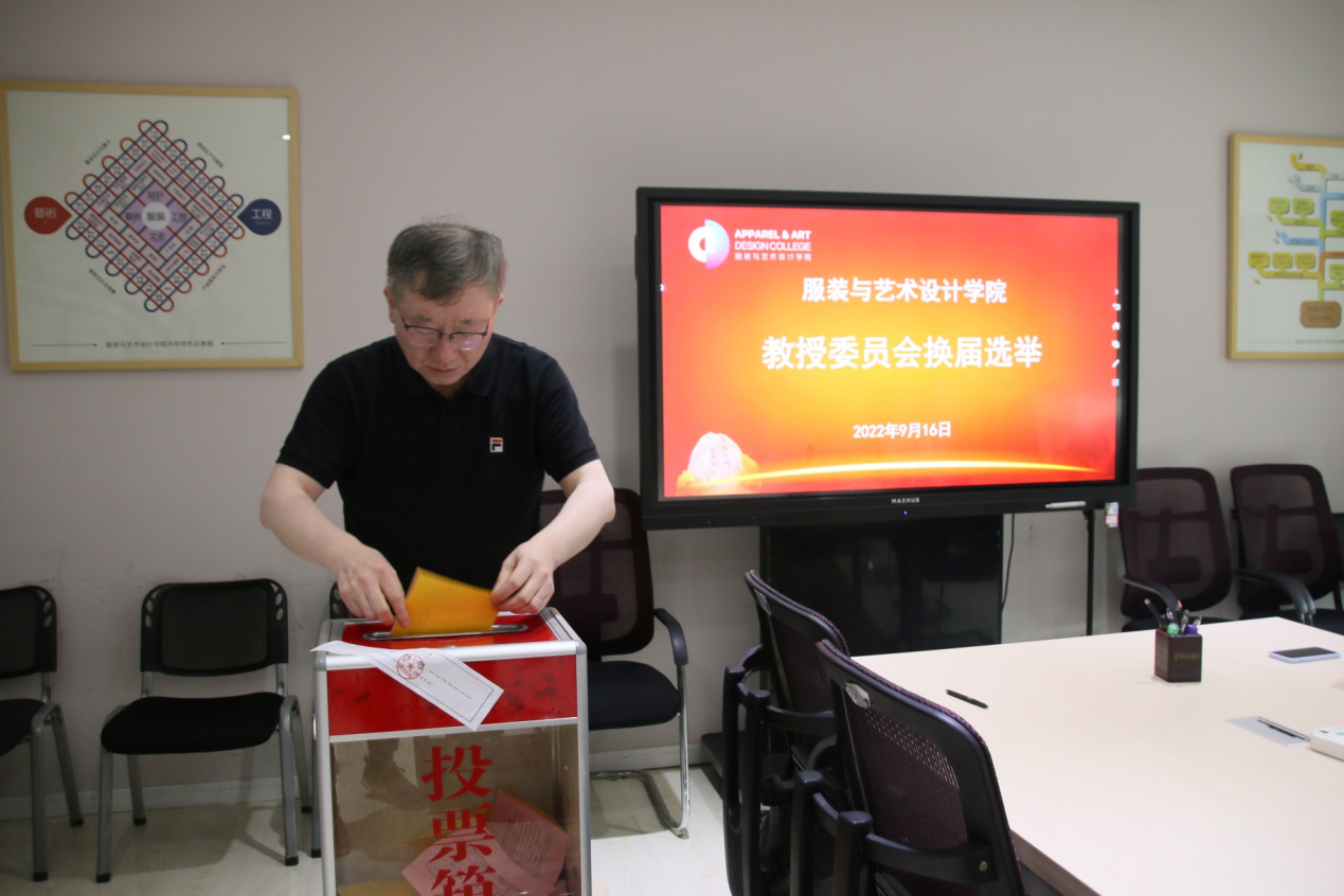 在金花校区服装楼三楼会议室举行教授委员会换届无记名投票选举。副校长戴鸿、红桃视频