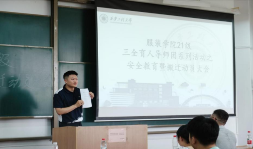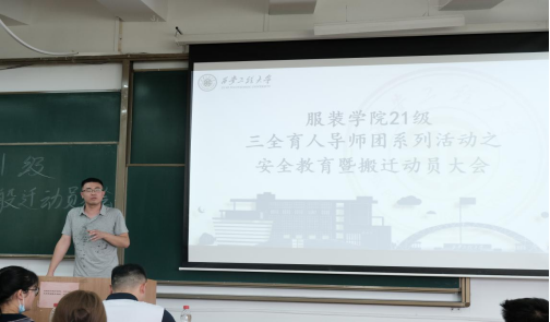 为促进学生自我管理,加强学生安全教育,提前让学生清楚搬迁过程,服装学院2021级于6月22日中午12点召开三全育人导师团之安全教育暨搬迁动员大会。学生工作办公室党委副书记张骥、服装学院研究生辅导员黄博宇、服装学院2021级辅导员邢烜毓、王丽丽和刘文奇老师及班委和宿舍长参加会议。