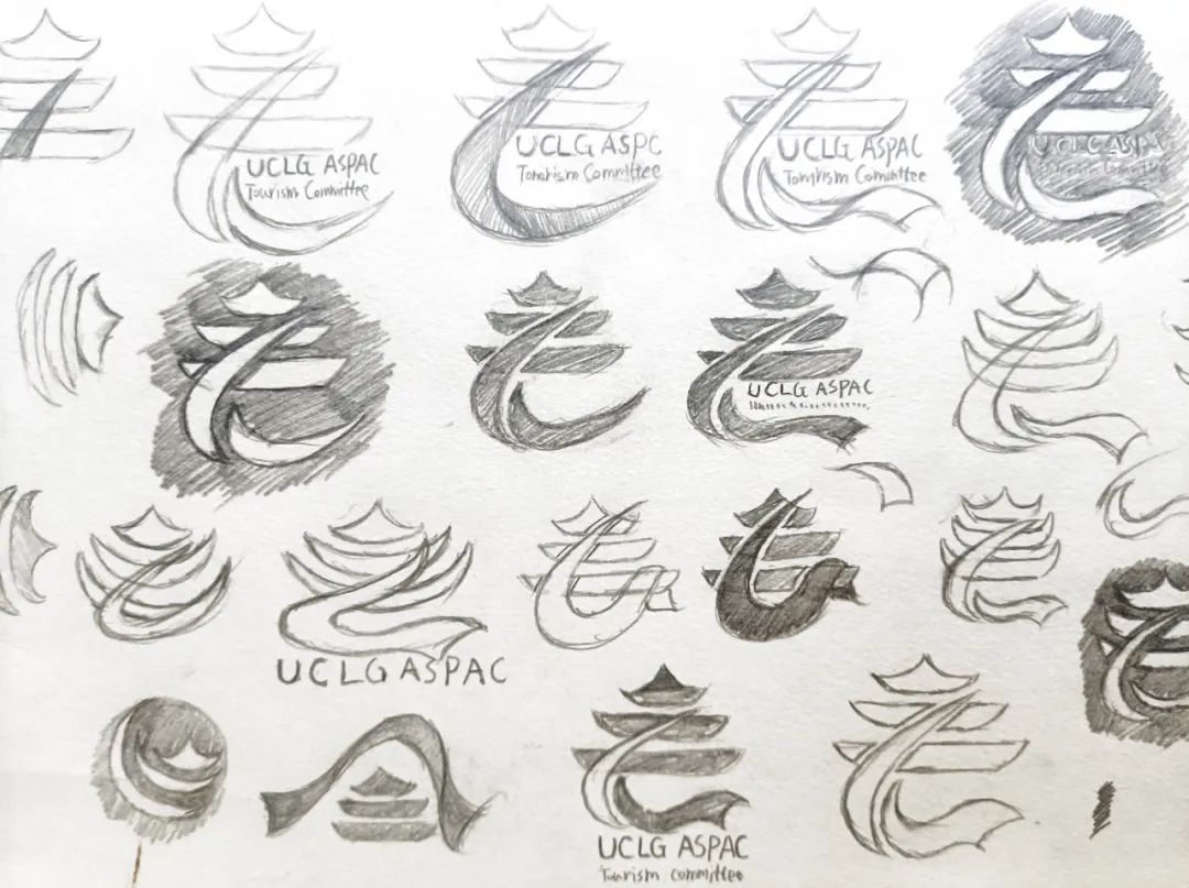 在设计会徽的过程中,唐一博在指导老师任晓辰带领下以旅游委员会“旅游促进和谐发展和交流互鉴”的宗旨和目的为切入点,同时加入了对于不同城市和地区间在文旅方面的团结、交流、合作、发展和友谊的设计理念来进行创作。确定了基本理念后,他先后选出了“和谐”“传承”“包容”等18个设计关键词和“钟楼”“大雁塔”“纽带”等11个设计元素。