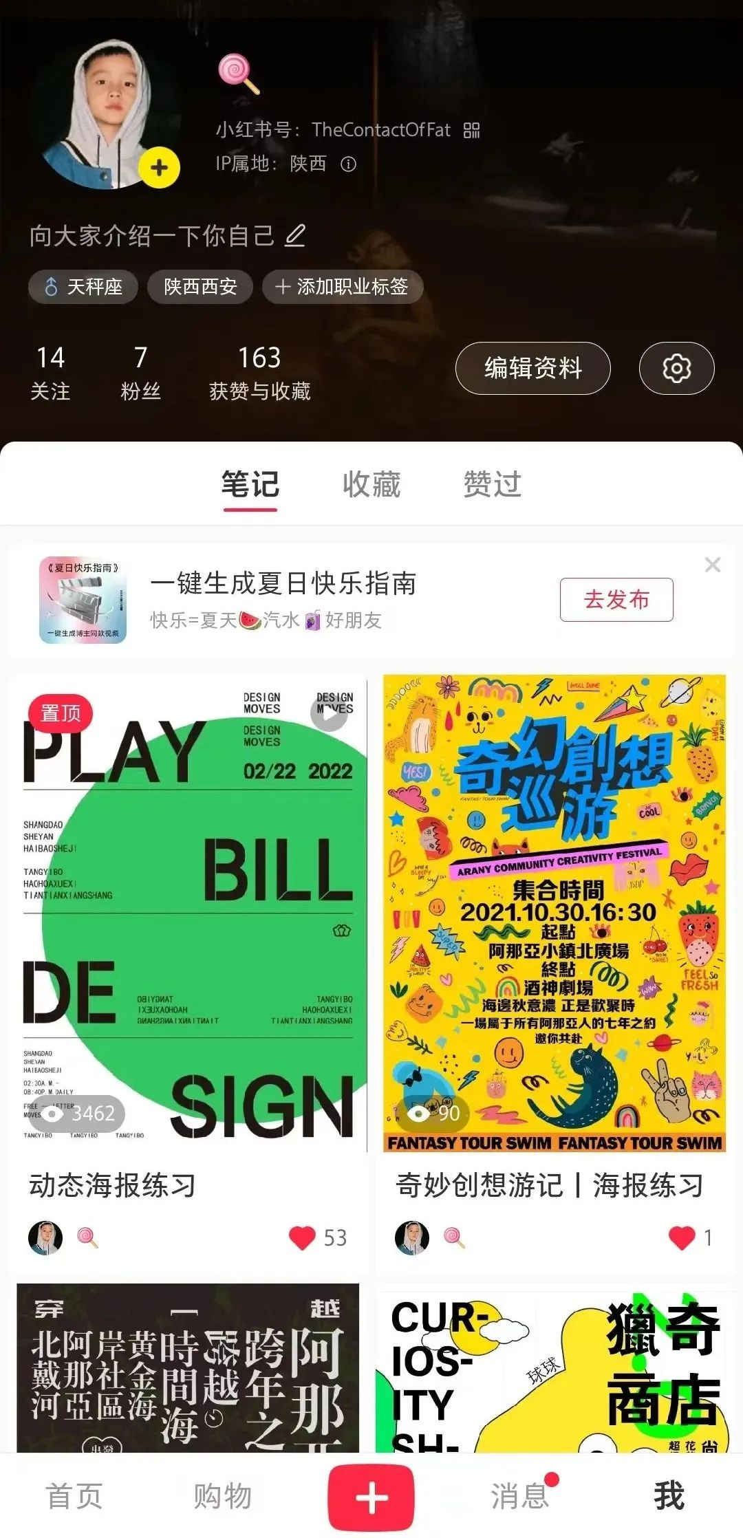 “你可以迷茫,但不能虚度,要努力做自己专业领域里最闪亮的那颗星。”这是唐一博最喜欢的一句座右铭。大学期间他认真对待每一门专业课,认真学习每一个专业知识,还主动报名参加了设计辅导班来进一步提升自己的专业水平和能力。闲暇之余会去看画展、艺术展,提升自己的美学修养,还在小红书开设了个人账号,通过新媒体平台分享自己的作品,在已知边界不断探索,不断挑战。