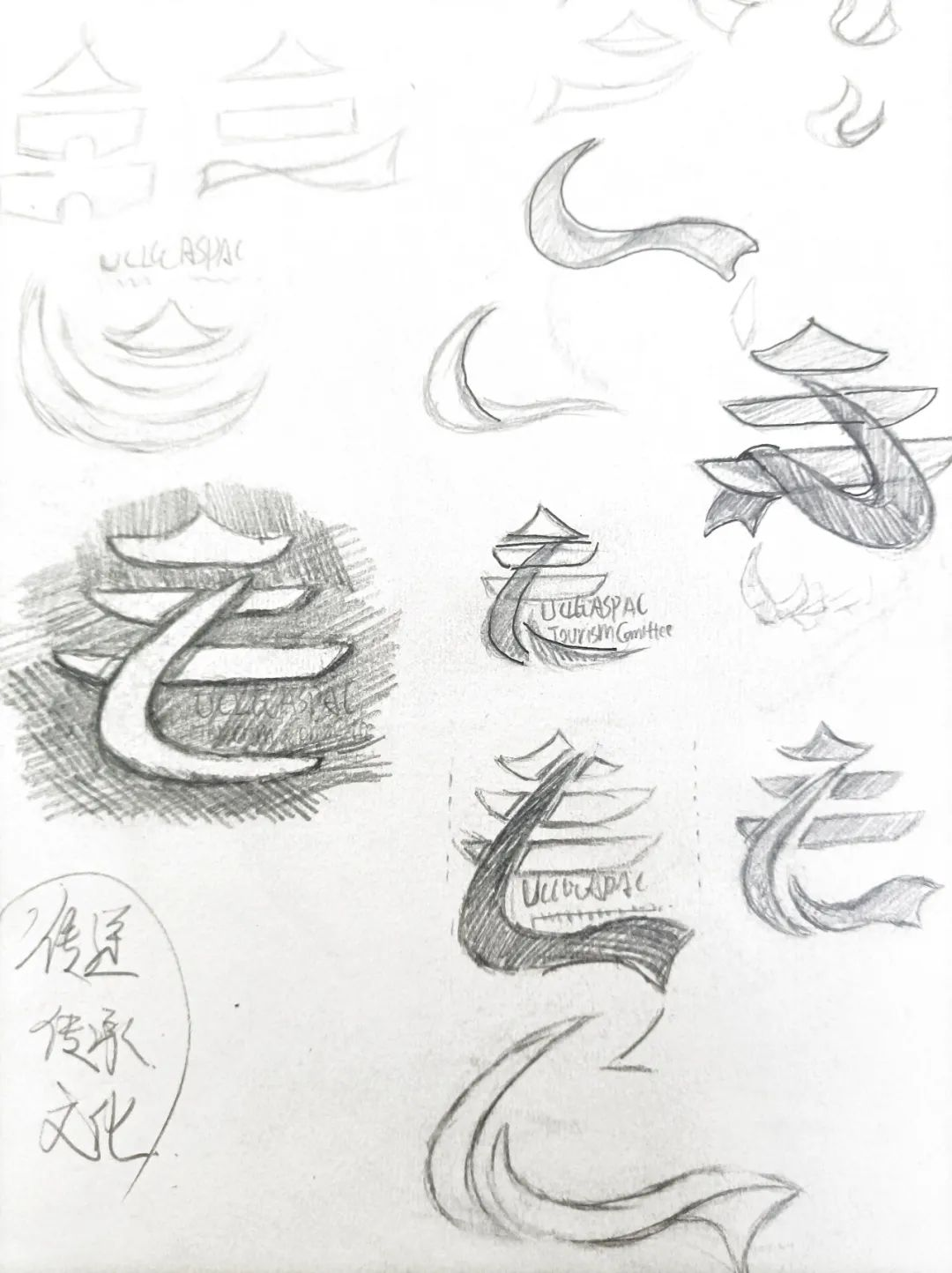 第一版手稿设计了19个雏形,再将19个雏形反复比对,不断尝试、打磨,最终确定了“丝带”和“钟楼”两个核心元素来传达设计理念。