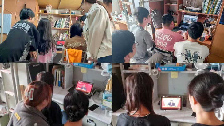 (师生在学院主会场一同观看“庆祝中国共产主义青年团成立100周年大会”)