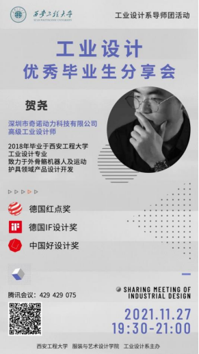 为增强工业设计系学生专业认识,了解行业需求,树立正确的就业观念,服装与艺术设计学院工业设计系于2021年11月26日通过腾讯会议召开三全育人导师团系列活动--优秀毕业生分享会。本次分享会特邀请我校2018届优秀毕业生贺尧同学分享自己从业以来的设计成长历程。分享会由工业设计系主任孙薇老师主持,工业设计系教师及工业设计专业本科及研究生共计130余人参加。