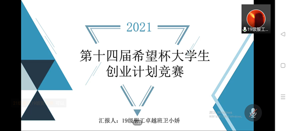 为了让本科新生更好地参与到十四届“希望杯”大学生创业计划大赛当中,服装学院于11月12日在腾讯会议召开第十四届“希望杯”经验分享宣讲会。学院科协邀请往届“希望杯”获奖团队负责人卫小娇和吴婕妤为同学们讲解创业计划书中关于市场需求与产品发展前景的撰写思路。2021级本科各班班委和参赛选手积极参与了本次培训。