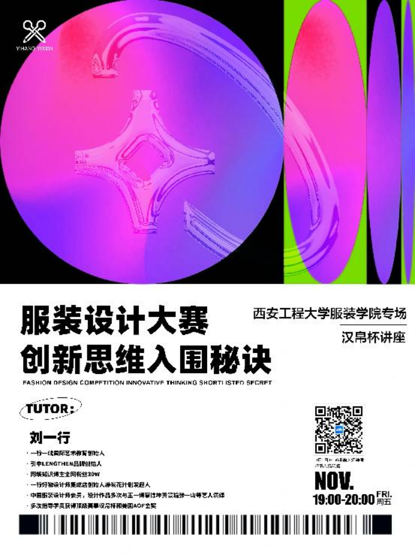 学生大赛经验,开拓设计思维与创新创意,2021年11月5日晚,服装设计系特别邀请一行一线国际艺术教育创始人、引申LENGTHEN品牌创始人刘一行老师,为红桃视频
