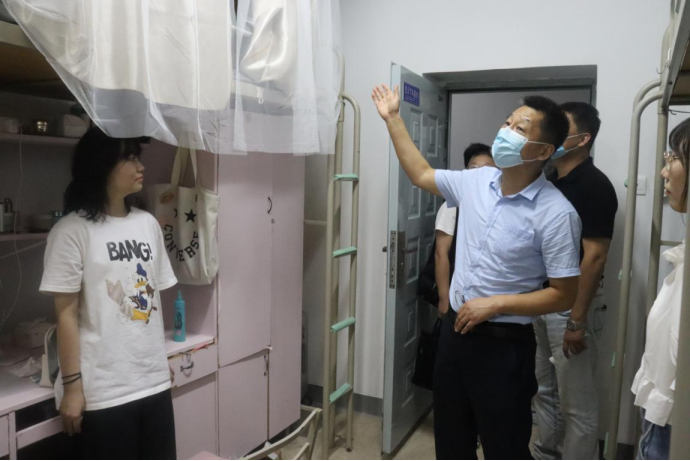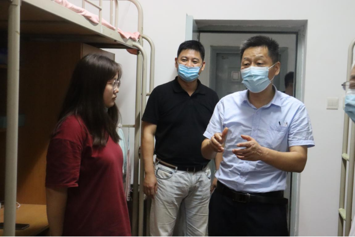 三是校院领导深入宿舍看望新生。8月29日下午,联系服装学院的校党委副书记、校纪委书记辛永昌带队,服装学院院长吕钊、党委书记李筱胜、党委副书记张骥和新生辅导员邢烜毓、刘文奇、李涵博等到宿舍看望和慰问2021级新同学。每进入一个宿舍,辛永昌热情的询问新生来自何处,对学校的初步印象如何,还有什么困难需要解决。辛永昌告诉同学们,在未来四年的学习生活中,无论遇到什么困难,学校和学院都会向所有同学提供最好的帮助,他希望大家珍惜四年学习时光,刻苦努力、争当上游,将来用学到的知识将祖国建设得更加强大。在看望结束时,辛永昌对学院迎新工作表示肯定,他同时要求学院继续提供好对新生服务,解决好他们存在的实际困难,按学校要求做好入学教育各项工作,使全院新生尽快适应大学生活,精神抖擞的投入到大学的学习生活之中。