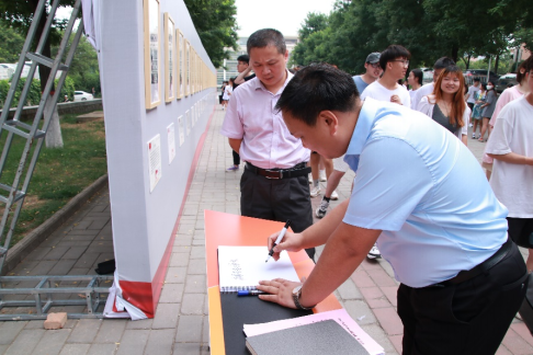 井浩在发言中对结合专业特色进行党史学习教育的形式表示肯定与支持,他分享自己在党史学习教育中的部分心得体会,强调学校党委将建立党史学习教育长效机制,在党史中汲取精神的力量,主动提振学校干事创业的精气神,为师生的发展和学校的未来注入希望。王志认为本次展览是我校党史学习教育形式的又一次创新。各单位和全体党员师生在今后的党史学习教育中,应加强组织领导,细化措施,完善举措,注重实效,总结提升,强化督导,坚持规定动作做到位、自选动作有特色,保证学习教育质量和成效。