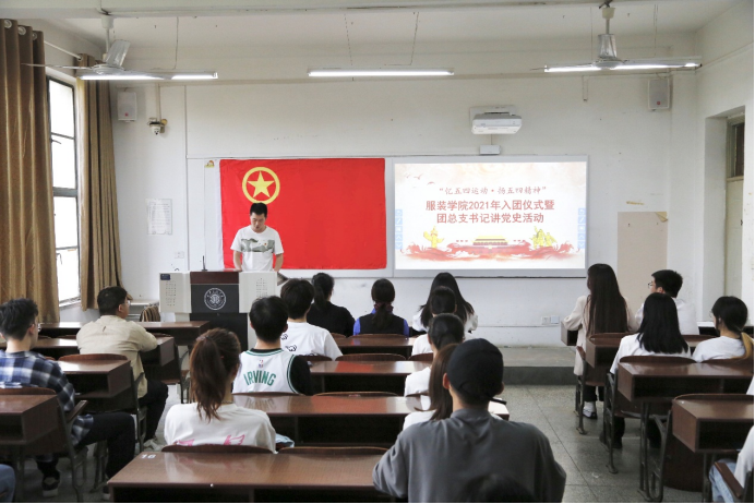 在五四青年节来临之际,为继承和弘扬“爱国、进步、民主、科学”的五四精神,坚定团员青年爱国爱党之心,更好地推进党史学习教育工作,2021年4月29日下午,服装学院团总支开展2021年入团仪式暨团总支书记讲党史活动。