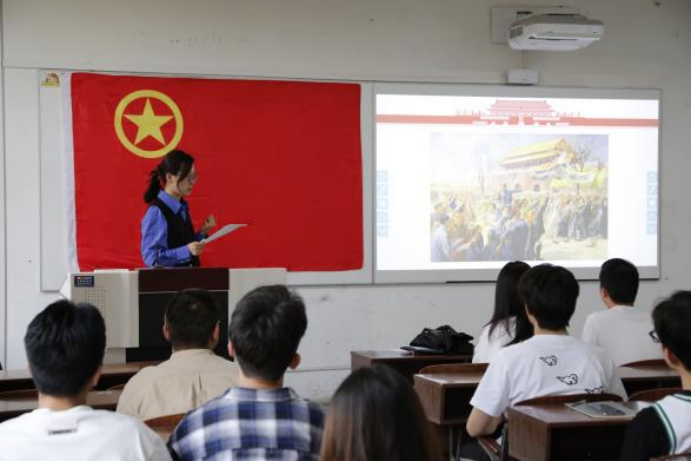 仪式结束,马薏雯以周令钊先生的一副油画《五四运动》回忆历史,同团员青年们重温五四运动,并介绍了五四青年节的由来。她强调:“五四运动推动了马克思主义在中国的传播和蓬勃兴起,为中国共产党的成立在思想上、干部上做了准备,具有划时代意义,我们应铭记历史,将爱国、进步、民主、科学的五四精神发扬光大。”
