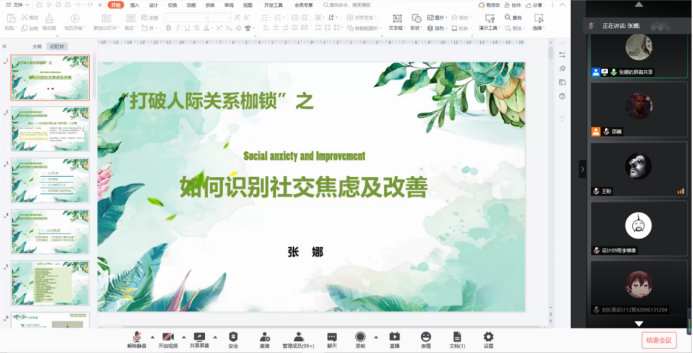 2020级服工专业姚尚欣同学在会后表示:“当下很多同学面临人际交往问题,今天的线上心理讲座,给了我们许多自我调适的建议,我觉得非常实用,也很感谢三全育人导师团的安排。”