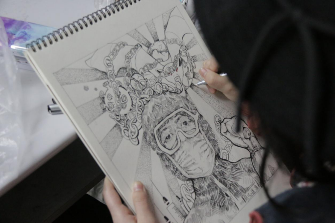 金花校区比赛进行时的画作特写正在创作的参赛学生们
