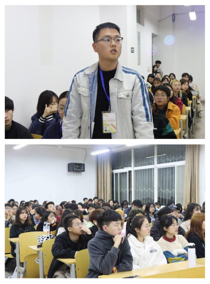 为更好的传递学习方法,明确学习目标,帮助同学们适应大学生活,11月15日晚,服装学院举办“三全育人导师团”系列活动之学长学姐经验交流活动,邀请2016级、2017级共7位保研、成功签约企业的优秀学生代表与大一新生面对面交流。相关导师团秘书、年级辅导员以及450余名新生参加了本次活动。