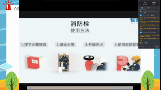 志愿者精心准备了消防员救火演练和灭火器操作指导视频,为同学们宣讲校园内易引起火灾的环境和原因,并重点对学生宿舍存在的消防安全隐患进行一一列举,提醒同学们在日常学习生活中一定要遵守学校的规章制度,确保个人与集体安全。在宣讲之后,同学们根据自身学习体会在评论区表达了关于消防安全的反思与感悟。