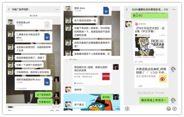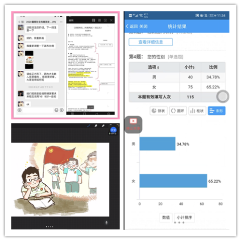 (实践团成员在微信群、腾讯会议上结合调研数据进行动画脚本和视频制作探讨)