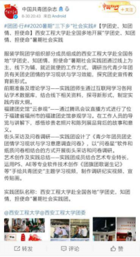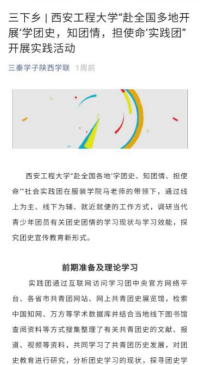 本次实践活动受到《中国共青团杂志》官方微博、三秦学子陕西学联官方微信公众号、校团委等9家校内外媒体报道。