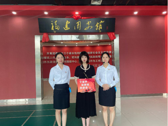 (实践团成员林诗蓥与福建团史馆工作人员合影留念)