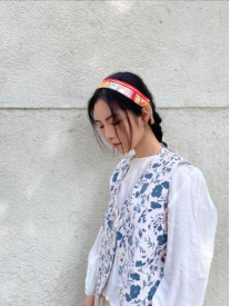 “星汉灿烂”系列产品设计灵感来源于汉阳陵出土的“千秋万岁”瓦当,以“千秋万岁”瓦当作为主要纹样,采用涂鸦手法展现传统元素之美,暗含东方元素内在的大美精神诉求,材质为真丝,以数码印花技术制作,保持图案的平衡性和质感。