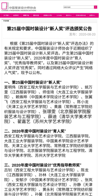 获得2020年度中国时装设计“育人奖”。
