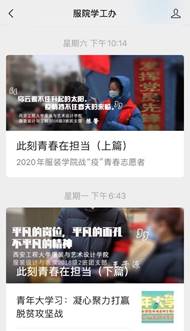 3月20日及23日,学院学生工作官方微信平台“服院学工办”推出上、下两期“此刻青春在担当”一线防控志愿者线上宣传表彰推文。以带入感强烈、体现学生志愿者一线工作的海报和他们的具体名单,展现学院百余名学子在全国各地防疫点付出过的青春力量、展现过的青春担当。