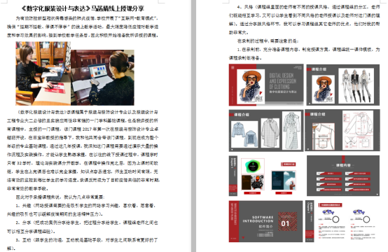 《数字化服装设计与表达》教学团队全体教师协同作战地完成了课件的录播,使得授课教师在很短时间内,进行分工、协作,较为高质地完成了前期课件的录播。老师们可以获得一手的教学资料,同时,教师可以利用超星学习通、利用微信群、QQ群继续跟学生交流,保证了教学效果学院在授课中积极总结线上授课的问题与经验,通过学院官方公共信息平台发布《红桃视频