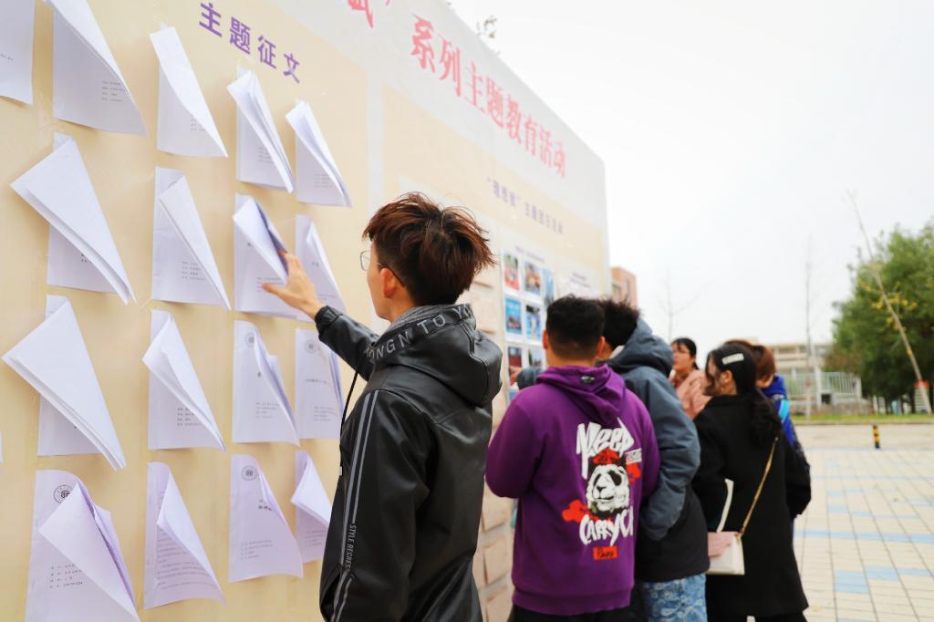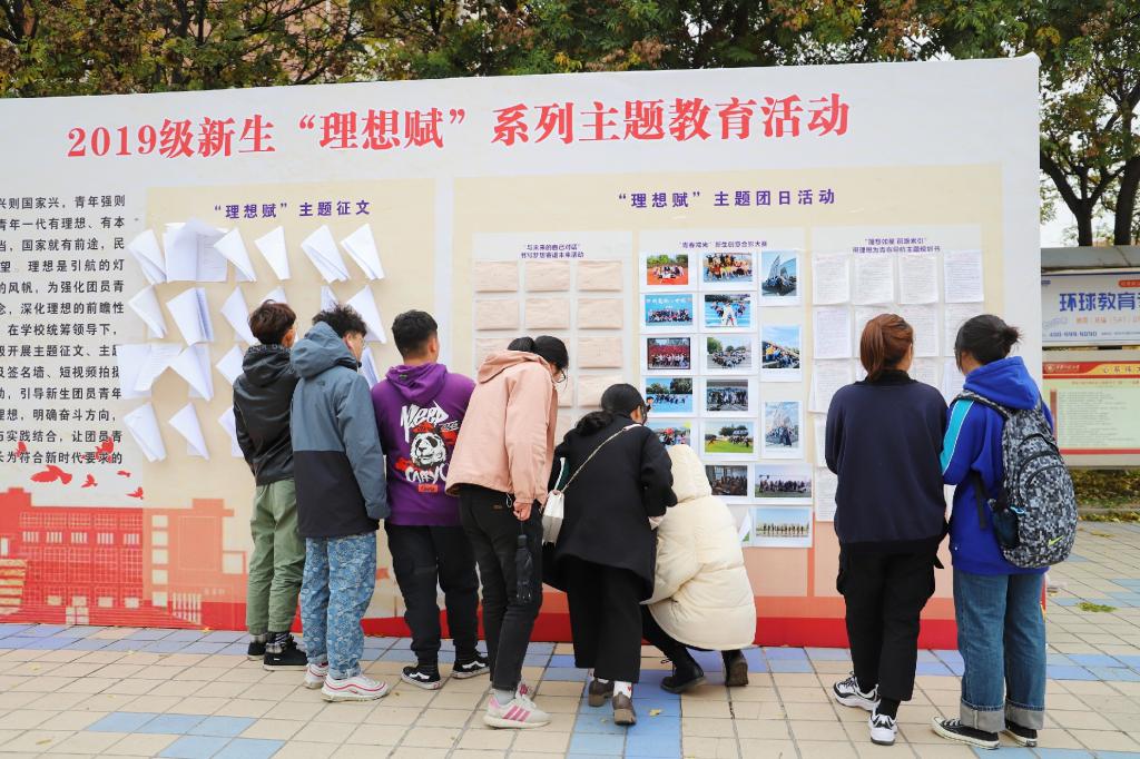 优秀征文在临潼校区“理想赋”主题展板张贴,同学们积极前去学习