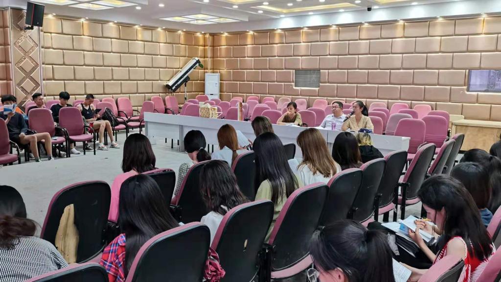 新生辅导员孙晨倩介绍了学生辅导员的职能职责,她表示愿意成为全体同学成才道路上的引领者、服务者和鼓掌者,同时强调了大一新生应遵守的学校及学院的相关纪律规范、请销假制度和线上群管理的内容,着重就如何落实好学校和学院正在开展的学风建设活动提出了具体要求。新生辅导员李涵博在向同学们问好之后,介绍了如何培养独立思考的能力、人际交往能力以及日常行为礼仪。李涵博强调,大学生应注意日常礼仪,在教学区域以及大型活动中的穿着得体,在与老师、同学相处的过程中讲文明、讲礼貌,锻炼和展现大学生的个人修养。李涵博最后鼓励同学们要树立远大理想,珍惜在校时间,实现人生价值。新生辅导员谭赛江用坚定的语气要求新同学在大学期间要注意培养自己面对困难永不服输的精神和意志。他带领同学们共同学习了《红桃视频