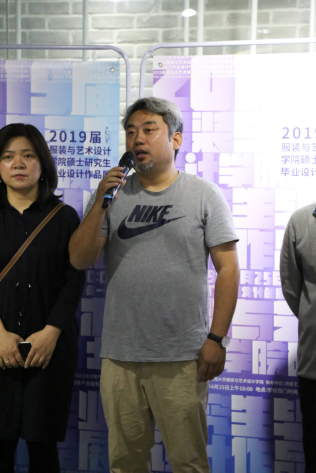 服装学院副院长田宝华在讲话中指出,服装学院研究生毕业展至今已走过四届,每年的毕业展都会给我校师生和社会各界带来一场视觉盛宴,它既是展示学生学习成果的舞台,更是一次面向社会的教学成果的检验,并向参展全体师生表示祝贺并寄语毕业生:我们艺术设计的研究生是理论的冒险家与探索者,更是创意的先行者。