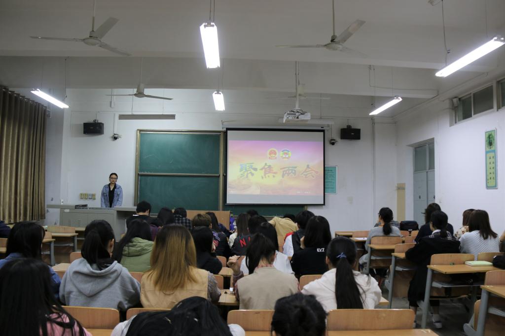 团总支在校团委的号召下,在两校区组织各年级团支部通过宣讲讨论和观看影片等灵活多样的形式于3月28日-4月3日在各团支部中深入开展了“学习两会精神”主题团日活动。
