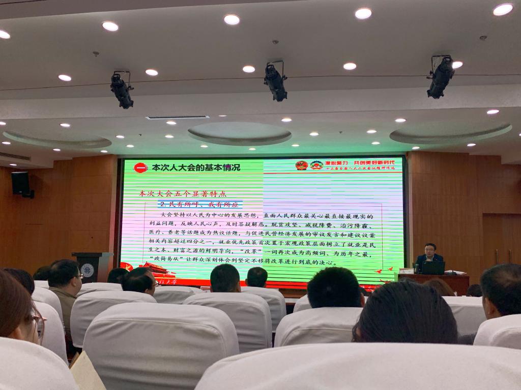 4月3日,服装学院的师生代表在临潼校区图书馆一层报告厅积极参加并认真听取了高岭校长进行的两会精神传达,他作为十三届全国人大代表、省委“代表委员讲两会”宣讲团成员,用深入浅出的语言,详略得当地全面介绍了两会的台前幕后,加强师生对两会的背景与效果的理解掌握。