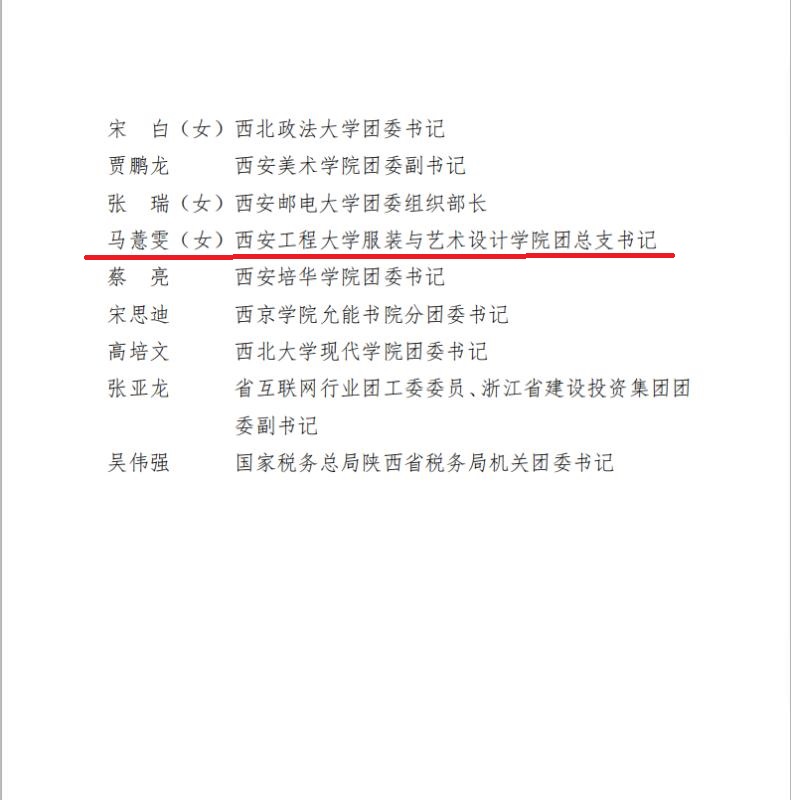 本次会议上,服装学院团总支书记马薏雯当选为新一届校团委委员。不久前,经校团委研究申报、校党委推荐上报、团省委评选,马薏雯被评为2018年陕西省“优秀共青团干部”荣誉称号。这也是我校第三名获得该荣誉称号的共青团干部。这份荣誉的获得,既是团省委对我校共青团工作的认可、校党委对服装学院共青团工作的认可,也体现出我校共青团干部一直以来的执着、坚守和付出。